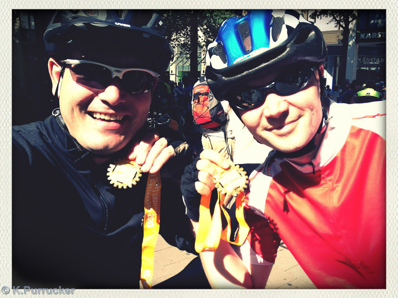Das Wetter war mit Temperaturen bis 25 Grad und Sonnenschein ideal für ein Radrennen. Nur der teils starke Gegenwind kostete viel Kraft und Geschwindigkeit. Dadurch verlängerte sich meine Fahrtzeit für die 102.70 km auf 3:21:52 Stunden und ich war danach extrem froh im Ziel zu sein. Es hätte nicht mehr viel gefehlt und ich hätte absteigen und schieben müssen.