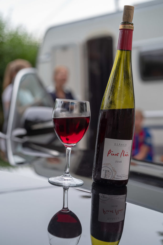 In den Sommerferien ging es dann endlich los. Mit dem Wohnwagen starten wir um 6 Uhr morgens Richtung Süden und fahren bis nach Turckheim in Frankreich in der Nähe von Straßburg. Es ist regnerisch und wir fahren unterwegs durch einige heftige Gewitter, welche die Straßen zu Flüssen werden lassen. Am Abend kommen wir an unserem ersten Etappenziel an und parken den Wohnwagen auf dem romantischen Campingplatz in der Mitte des Ortes Turckheim. Der Ort liegt zwischen Weinbergen im Rheintal im Elsass am Rande der Vogesen. Neben dem Wein ist er für seine vielen Störche bekannt. Nachdem wir den Wohnwagen richtig abgestellt und eine Pizza zum Abendbrot gegessen haben, wird es auch schon dunkel. Wir genießen noch ein Glas des leckeren, lokalen Rotweines und legen uns schlafen.