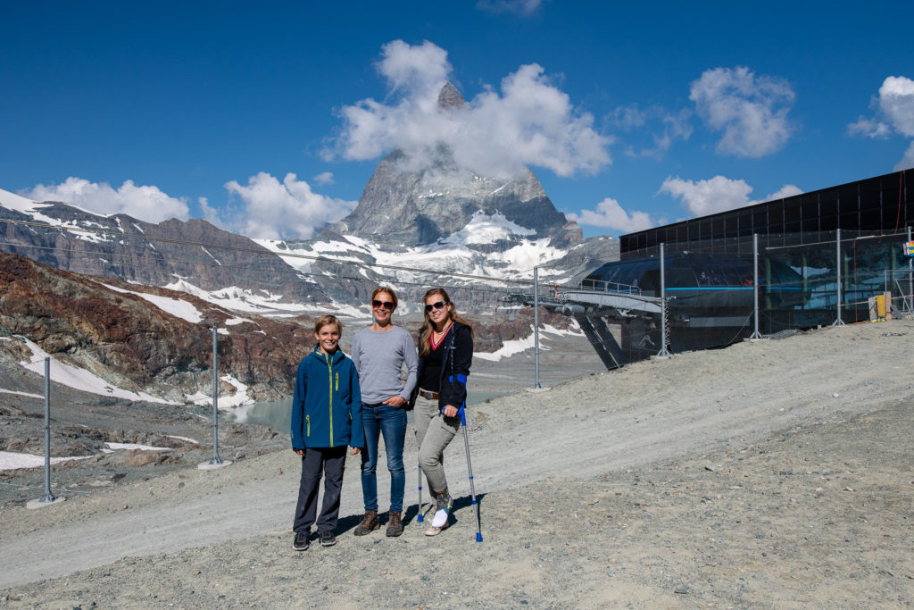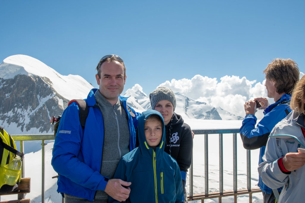 Trotz der Verletzung und den Einschränkungen beißt Clara die Zähne zusammen und kommt weiter mit auf unserer Erkundungstour. Wir fahren am nächsten Tag nach Zermatt und mit der Bergbahn auf das kleine Matterhorn. Es ist sehr touristisch und teuer aber die Aussicht ist bombastisch. Wir klettern zwei Stunden oben auf dem Berg rum und genießen die Aussicht. Uns als Flachländer macht dabei die dünne Luft in 3800 Metern höhe ganz schön zu schaffen. Auf dem Rückweg essen wir in Zermatt dann noch ein Schweizer Raclette und genießen ein lokales Bier. Danach geht es zurück nach Racon.