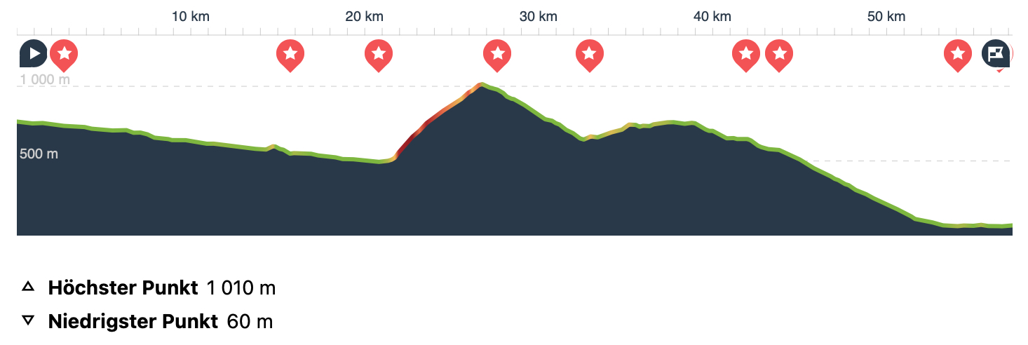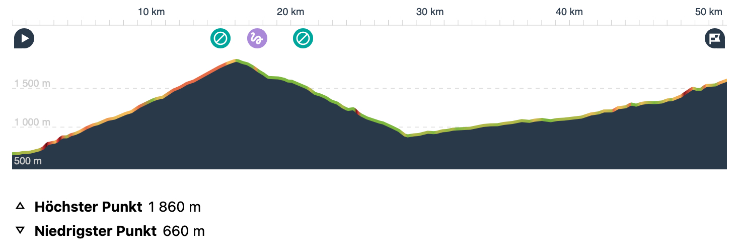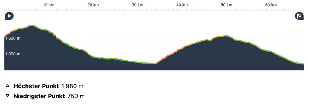 Wir sind müde und nehmen bei der letzten Etappe unseres Alpencross mit dem Gravelbike die Abkürzung. Somit hat diese eine Länge von nur 57,2 km und wir müssen nur 740 Höhenmeter bezwingen. Auf halber Strecke müssen wir noch über einen Pass mit etwas über 500 Höhenmeter Differenz und danach geht es fast nur noch Bergab bis zum Gardasee.
