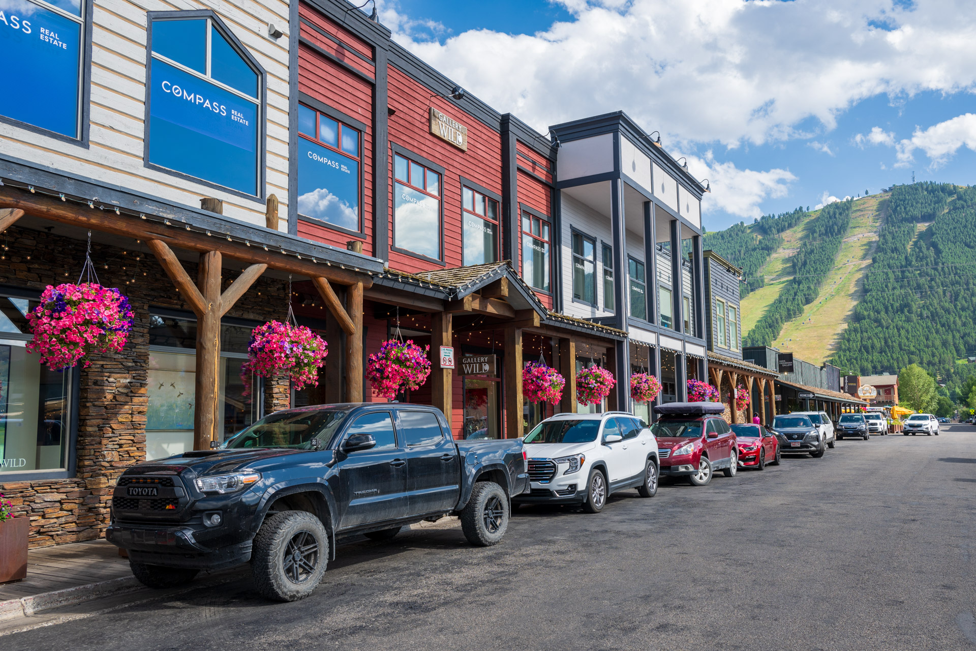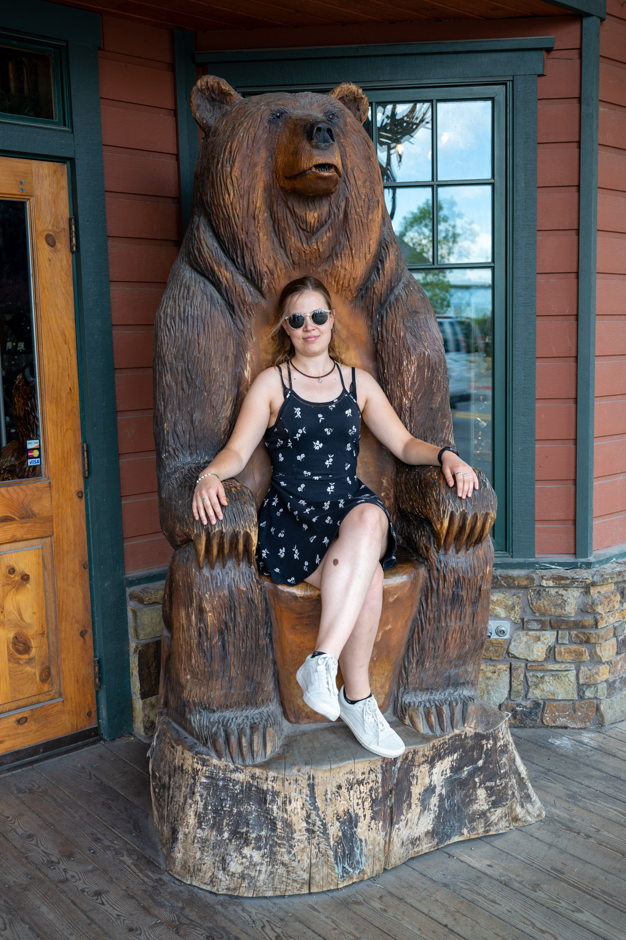Nachdem wir unser kleines Holzhaus bezogen haben, laufen wir am späten Nachmittag durch Jackson und erkunden die Geschäfte. Wer möchte kann hier teure Kunstwerke und Immobilen kaufen. Sogar ein richtiges Jagdschloss wird für 14 Millionen Dollar zum Verkauf angeboten. Nicht ganz unsere Preisklasse, aber auf jeden Fall beeindruckend.