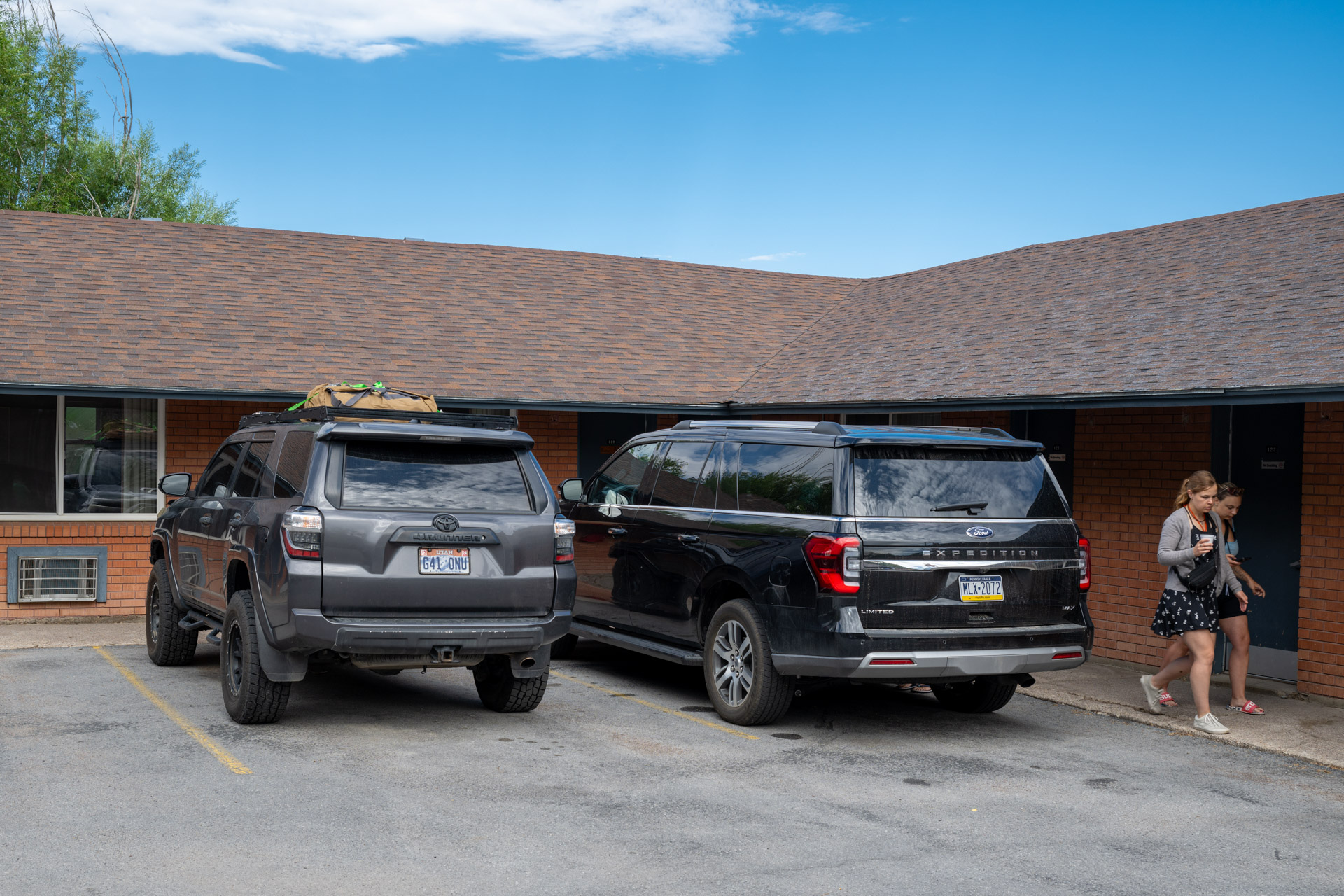Am Nachmittag erreichen wir das Cowboy Village Resort in Jackson, wo wir ein kleines Blockhaus mit Doppelbetten reserviert haben.