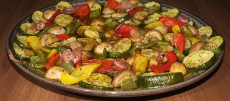 Zutaten:1 Aubergine4 Zucchini3 Paprikaschoten, bunt, nach Belieben250 g ChampignonsThymian3 Zehen KnoblauchSalz3 EL Öl Für die Marinade:2 Schalotten (alternativ rote Zwiebeln), 3 Limetten, 5 EL Balsamico, 220 ml Olivenöl, 5 EL Weißweinessig, Öl für das Blech Für die Garnitur:Oliven, Basilikum Zubereitung:Gemüse in reichlich kaltem Wasser rasch, aber sorgfältig waschen und in grobe Stücke, Zucchini in dicke…